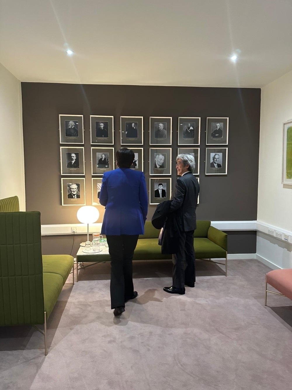 In front of the photos of Presidents of UCD, Professor Orla Feely, President of University College Dublin (left) and Japanese Ambassador MIYAGAWA Manabu (right) (photo taken in January 2026)