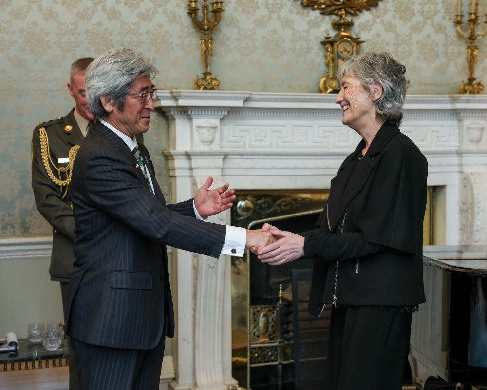 On 13 January, I presented my credentials from His Majesty, the Emperor to H.E. Ms Catherine Connolly, President of Ireland at Áras an Uachtarán. The President began her remarks by expressing her condolences about H.E. Mr SHIMADA Junji, former Ambassador of Japan to Ireland who passed away last year. Ambassador SHIMADA entered the Ministry of Foreign Affairs of Japan in the same year that I did, and the President’s sincere words had me trying to stop tears from falling during the ceremony. Then, the President smiled, and continued to talk in her own words about the recent remarkable development of relations between Japan and Ireland, expressing her expectations for the 70th anniversary of the establishment of diplomatic relations between Japan and Ireland next year. Fortunately, eight days after the ceremony, I was invited again by the President to her New Year’s Reception for the Diplomatic Corps with all the Ambassadors in Ireland. Of course, I was deeply honoured to reiterate my gratitude.