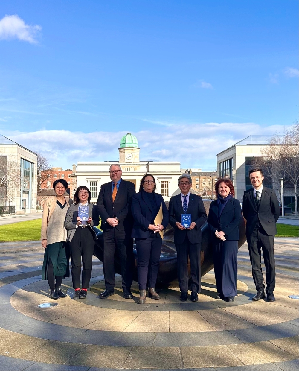 Ms Aoife Conduit, Assistant Secretary General, Department of Education and Youth (centre); Mr Mark Bohan, Principal Officer (third from left); Ms Karen Ruddock, Director, PPLI (second from right); Ms IKEDA Mizuki, Japan Foundation (second from left); Ambassador MIYAGAWA Manabu (third from right); Ms NAKATA Keiko, First Secretary, Embassy of Japan in Ireland (left); Mr Dáithí Ó hAodha (right) from the Information and Culture Section at the Embassy of Japan in Ireland (right)