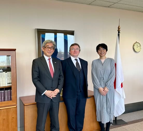 On 27 March, Dr. Declan M. Downey kindly visited the Embassy of Japan and met with Ambassador MIYAGAWA Manabu and Ms. NAKATA Keiko, First Secretary of the Embassy of Japan.