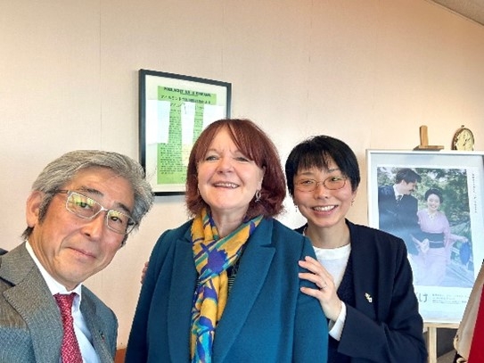 在アイルランド日本大使館にて撮影。カレン・ラドック・ポストプライマリー・ラン ゲージ・アイルランド所長(中央)、筆者(左)、中田啓子一等書記官(右)