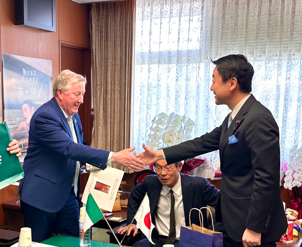 さて、私は、今月後半の約1週間、年1回の欧州各国駐在の日本大使の会議に出席のため、東京に出張しました。同時期にセント・パトリックス・デー(注:アイルランドにキリスト教を伝えたセント・パトリックの命日の3月17日。アイルランドでは各地でパレードが行われ、閣僚は手分けして世界各国でのお祝いに参加)外交の一環で訪日したショーン・キャニー運輸担当国務大臣一行にお供して、横浜、表参道でのセント・パトリックス・デー・パレードに参加し、また、佐々木紀・国土交通副大臣との会談に同席しました。