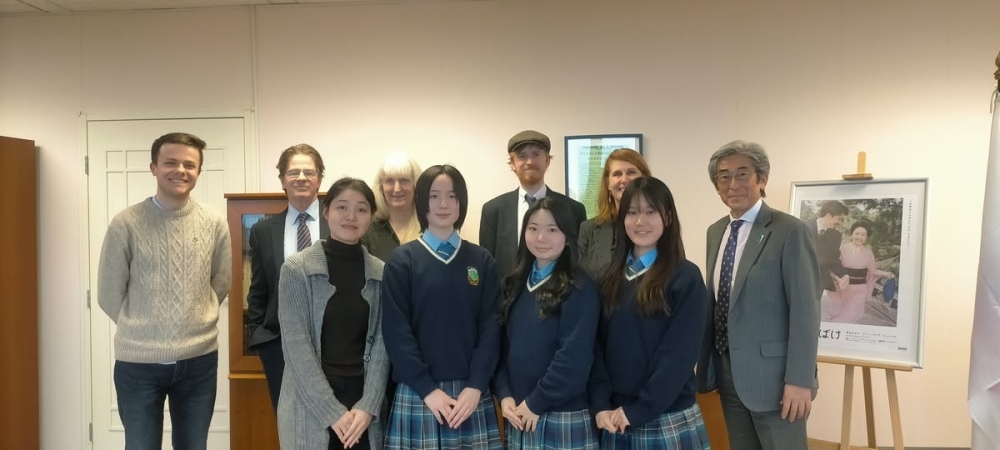 1月27日、ダブリン南西部のセント・マクダラス校に留学している大阪女学院高等学校の学生3名が、ギブソン・セント・マクダラス校長ほか留学エージェント「留学プラス」関係者とともに宮川学駐アイルランド大使を表敬しました。