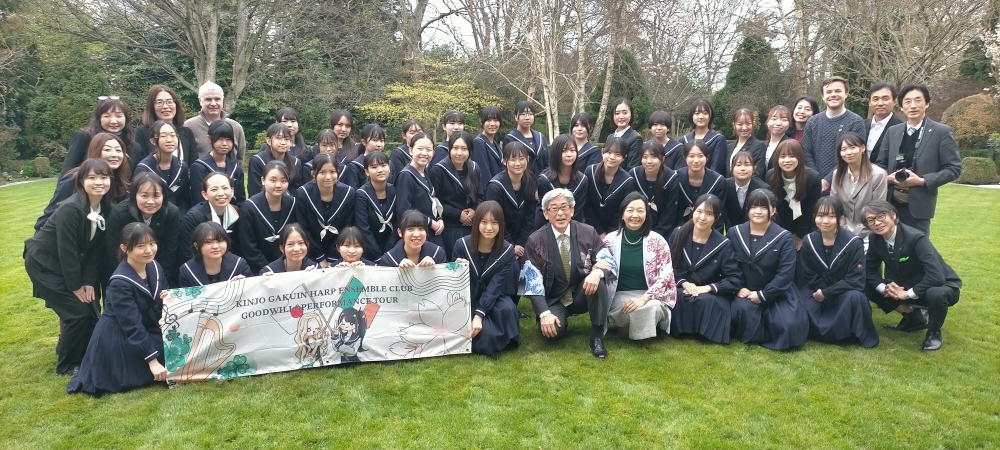 在アイルランド日本国大使館は、金城学院ハープ部の益々の発展と活躍を祈念します。