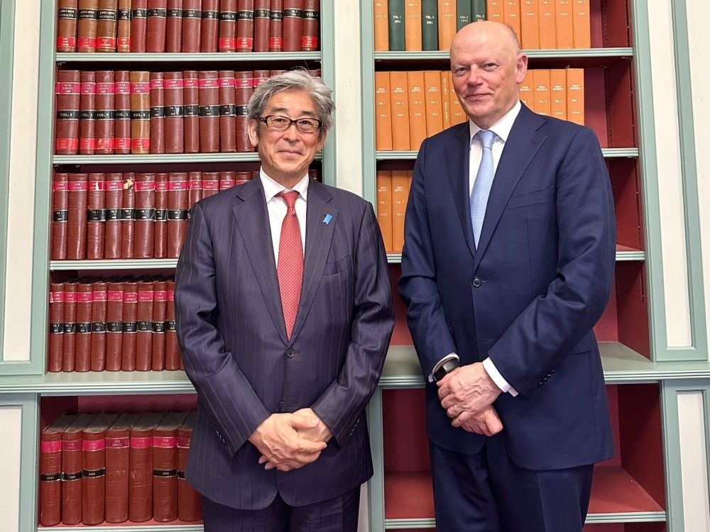 ドナル・オドンネル ・アイルランド最高裁判所首席裁判官(右)、宮川学大使(左)(令和8年4月撮影)